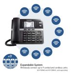 از ویژگیهای بارز این تلفن میتوان به اتصال تعداد بالایی از تلفن های بیسیم اشاره کرد. بدین صورت که شما می توانید به حداکثر 9 گوشی بیسیم که با تلفن همگام سازی میشوند، از دستگاه استفاده کنید. یعنی شما میتوانید به صورت همزمان 9 گوشی بیسیم بین کارمندان و یا اعضای خانواده تقسیم نمائید. قابلیت اضافه کردن 9 گوشی بیسیم 4 خط به دستگاه (داخل جعبه تلفن گوشی بیسیم قرار ندارد. مدل بیسیم مخصوص KX-TGWA40 یا KX-TGWA41 میباشد.)
